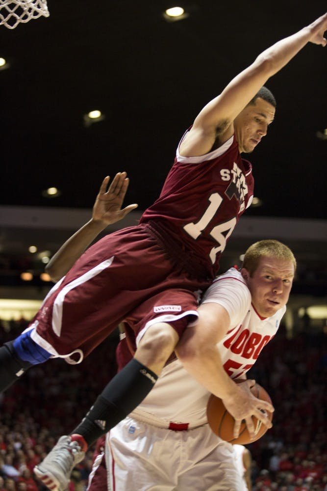 UNM out-rebounded NMSU 33-22. The Lobos made 26 of its 35 foul shots; NMSU was 16 of 19 from the line.
