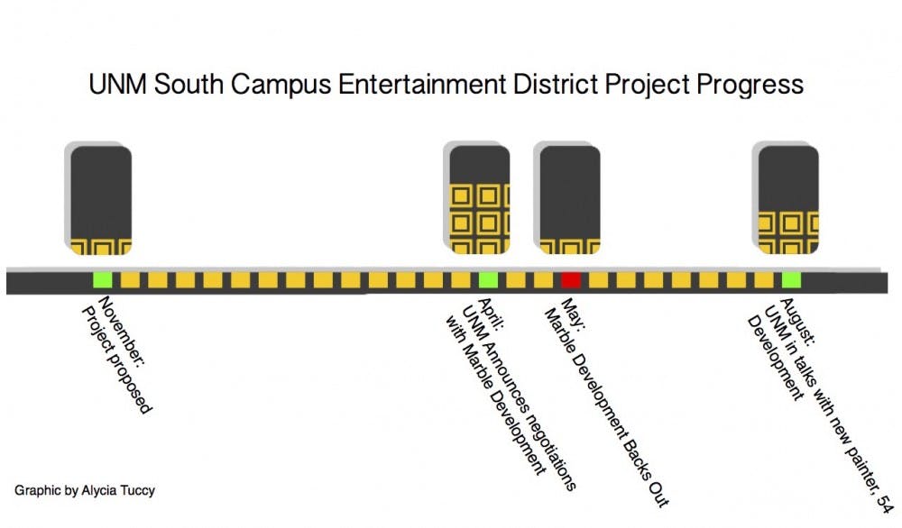 For almost a year UNM has been in the early stages of planning a new sports and entertainment district on south campus. Below is a timeline of the process, and where the University stands now with a potential partner.