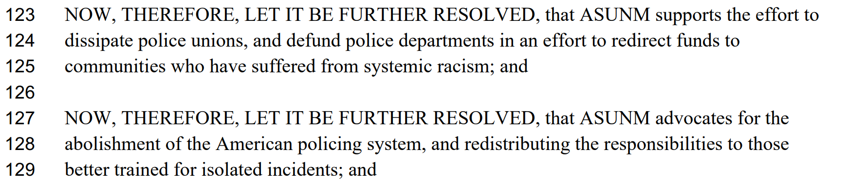 The ten-page resolution announced, among other things, ASUNM’s official endorsement of the dissipation of police unions, the defunding of police and a demand for a substantial address of police brutality and issues in the Black community from UNM’s administration.