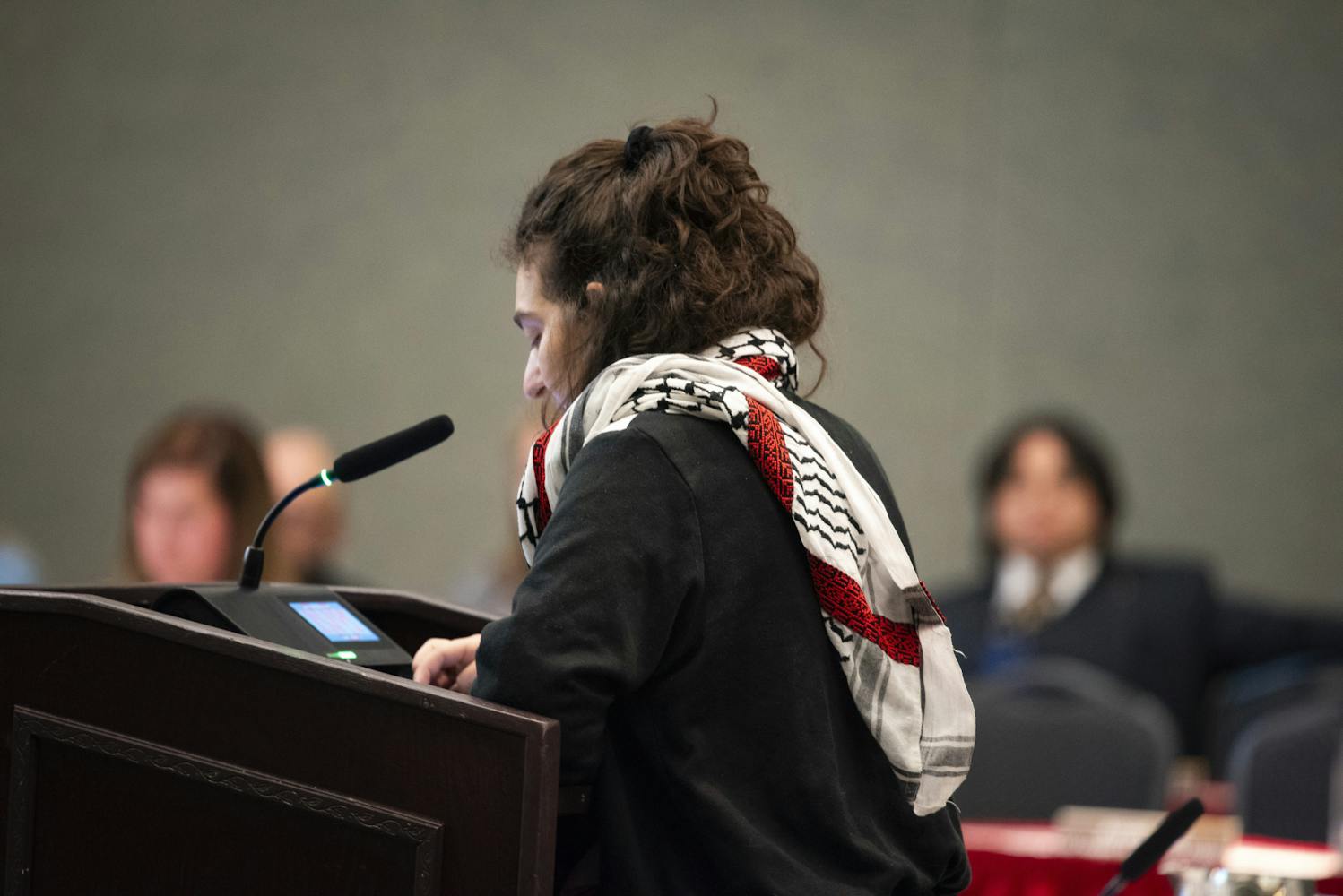 SJP member Jillian Grandinetti told the Regents that she lost family members to an Israeli airstrike in Lebanon.