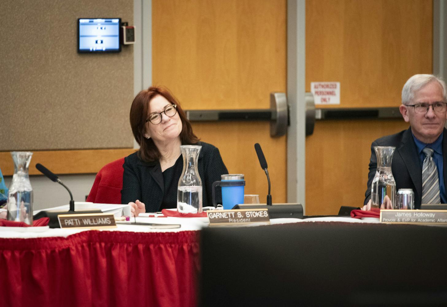 “Our experiences, our concerns, our expertise are often overlooked in times of crisis," she said. “President Stokes, I believe you'll support doing a better job of viewing faculty, staff and students as important resources on campus, and not just bodies, individuals to be left sitting what feels like at the kids table.”