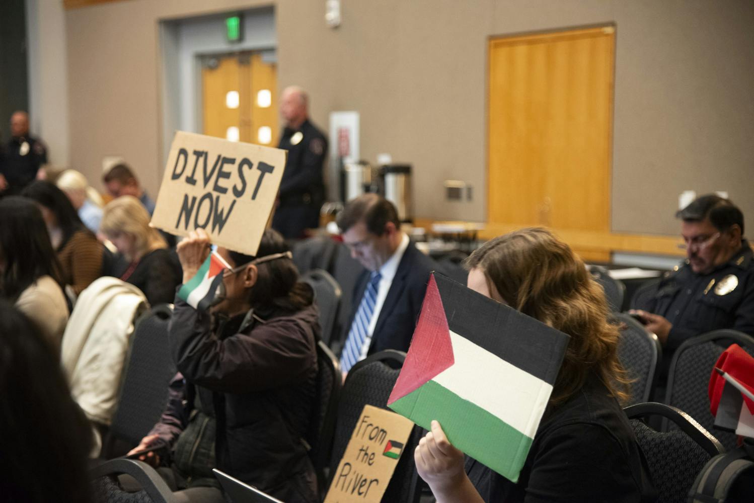 Some student and faculty speakers also asked the Regents to consider divesting from Israel and the fossil fuel industry.