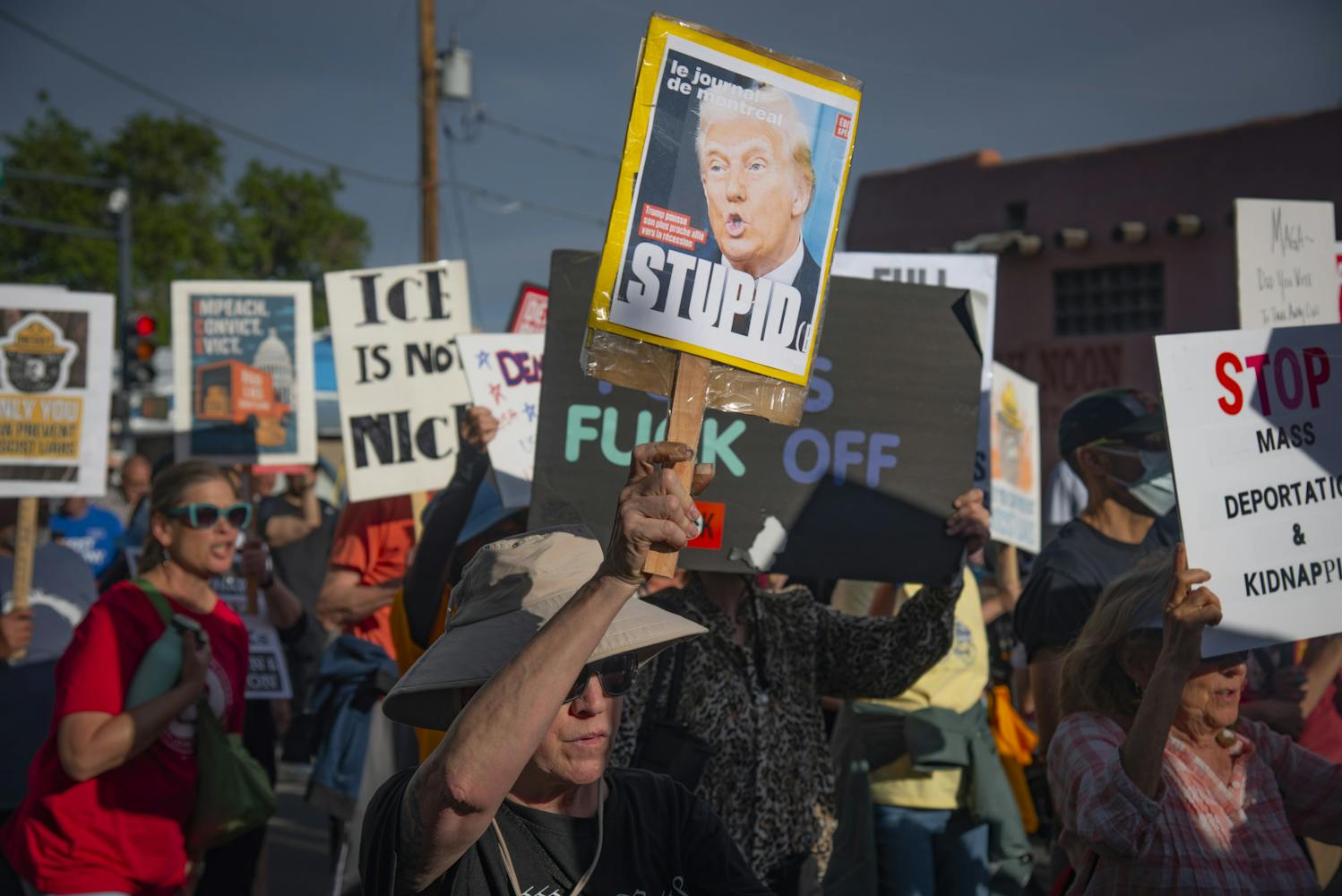 On Thursday, May 1, thousands of people of all ages gathered to rally and march from Tiguex Park in Old Town Albuquerque. People filled the streets carrying signs, flags and banners. The march was held in opposition to the Trump Administration and its policies.