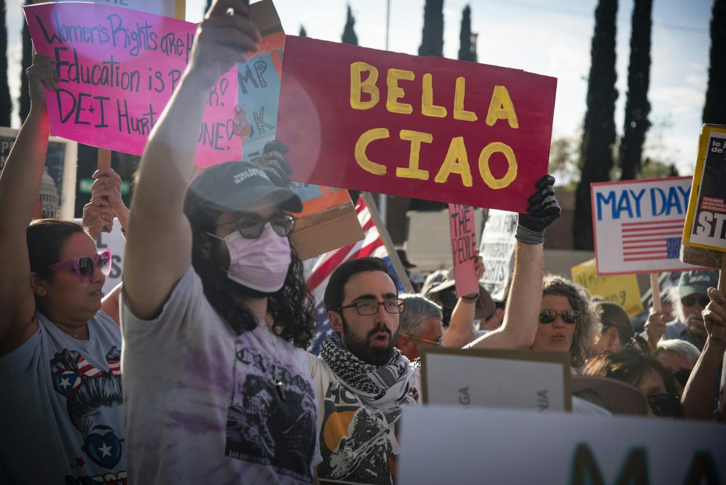 Protesters voiced concerns on issues such as immigration, public education, workers’ rights, immigration rights, due process, LGBTQ+ rights, science and research.