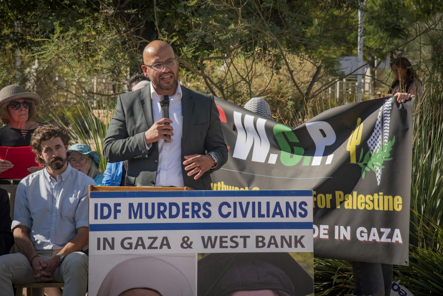 The press conference was sponsored by the Southwest Coalition for Palestine, Jewish Voice for Peace Albuquerque and the New Mexico Alliance for Justice in Palestine.