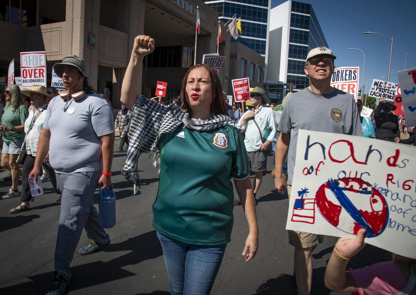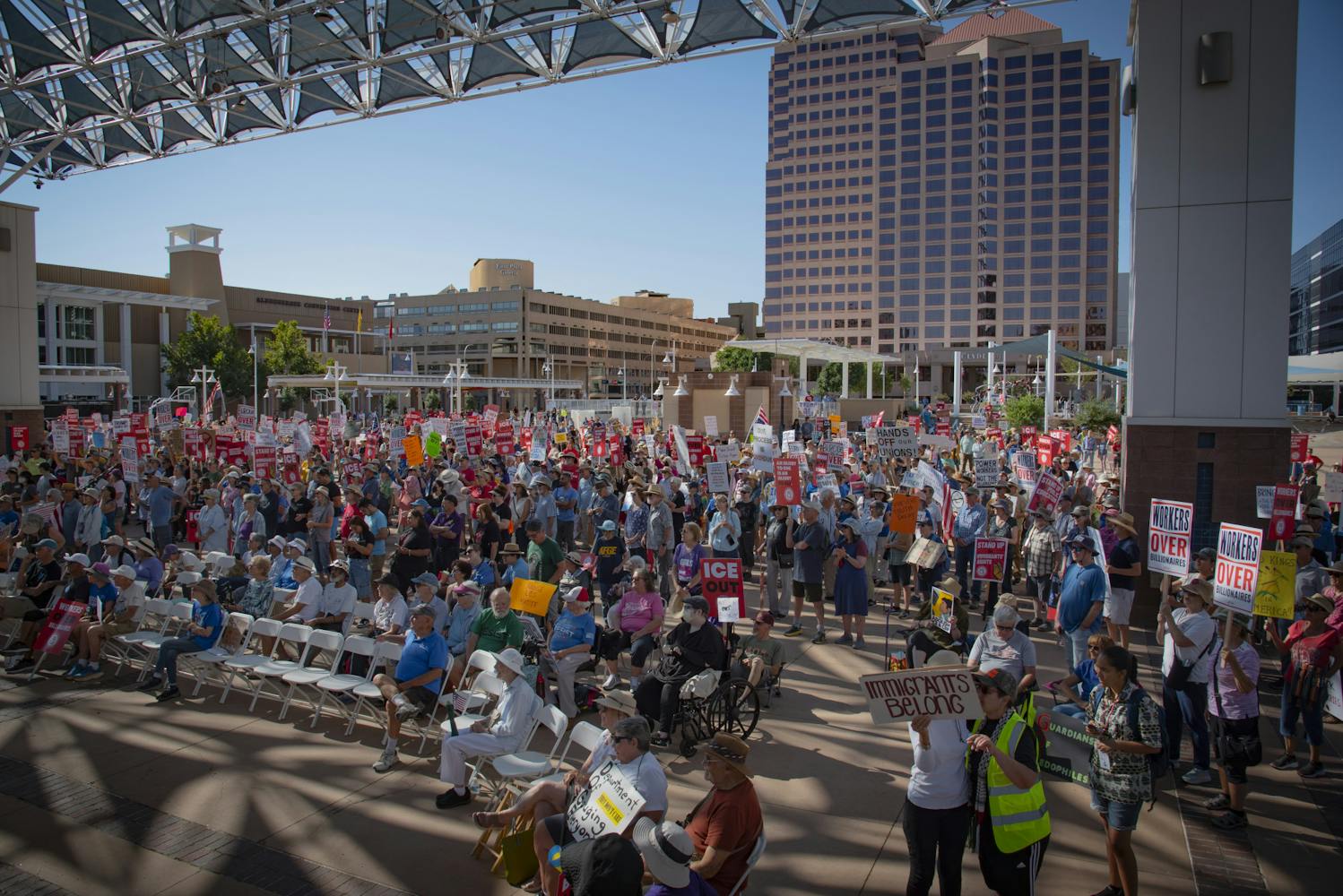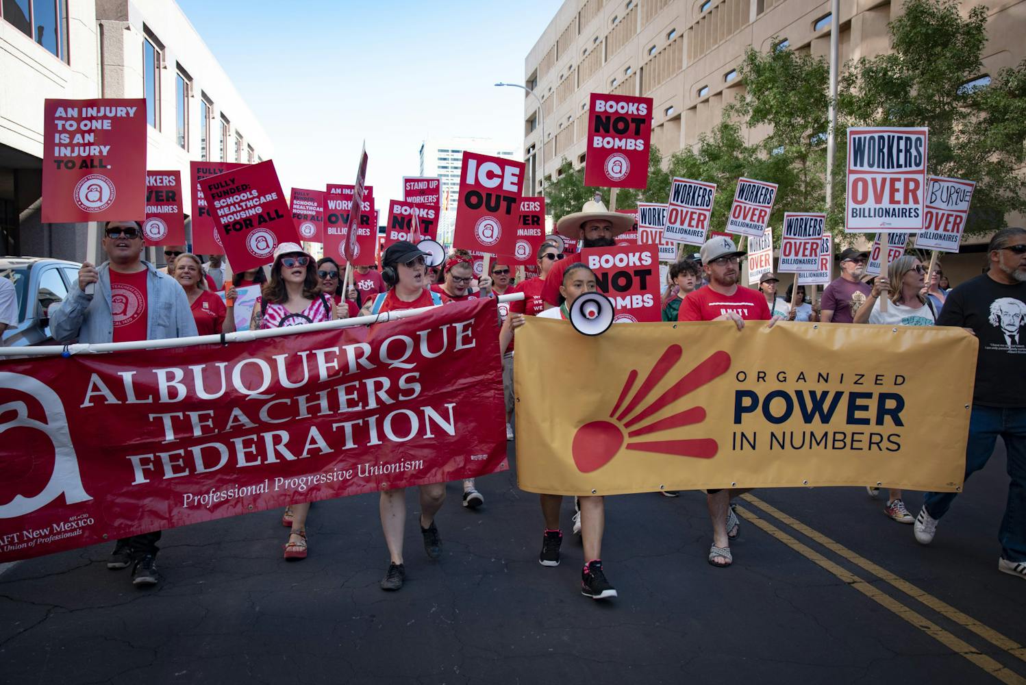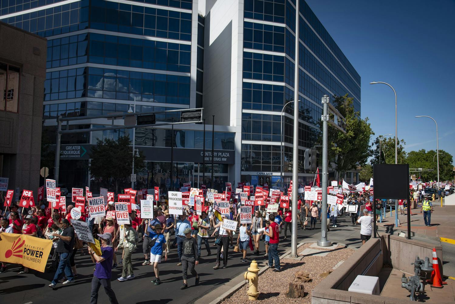 On Monday, Sept. 1, thousands of people gathered and marched at Civic Plaza in Downtown Albuquerque during the “Workers Over Billionaires" rally on Labor Day.