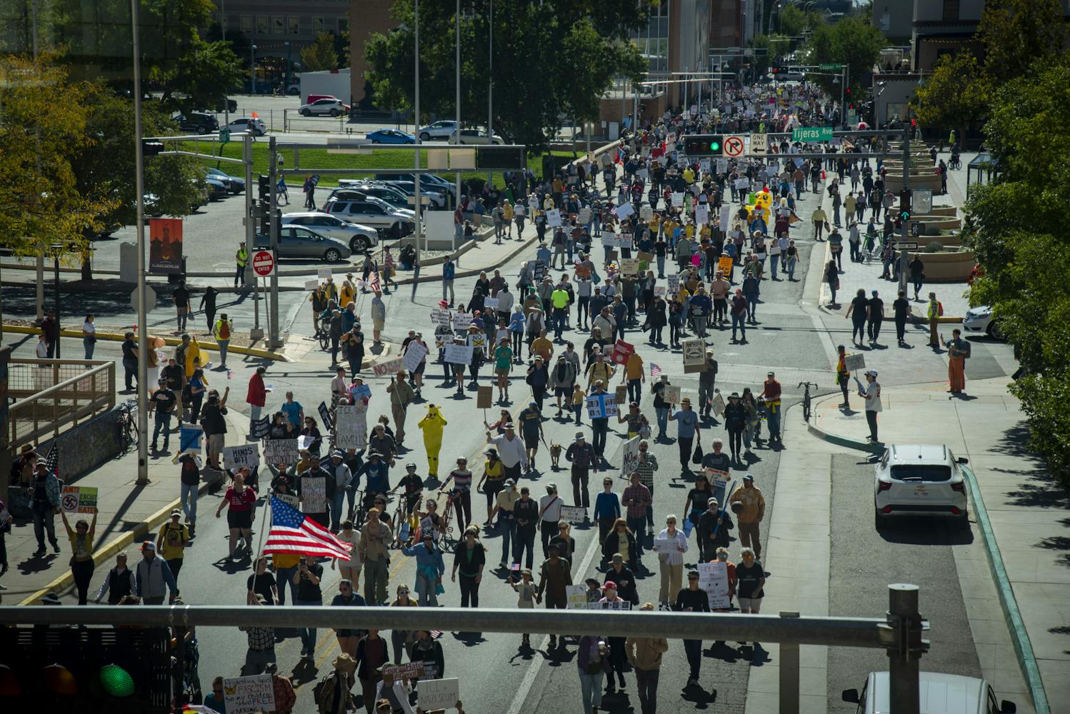 Among those seen marching were New Mexico Rep. Melanie Stansbury (D-01), New Mexico Speaker of the House, Javier Martínez (D-Bernalillo), Albuquerque Mayor Tim Keller and mayoral candidate Alex Uballez.