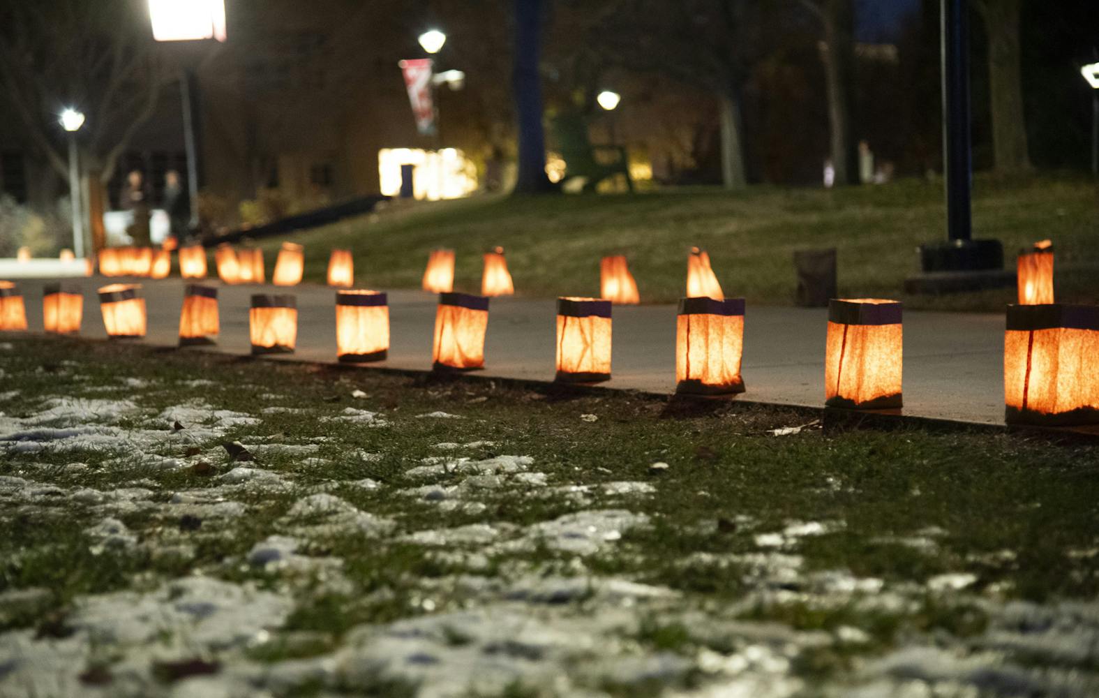 While the day got darker, the energy rose up as the march continued to the second stop of the night — the west side of the Student Union Building in front of Johnson Center. The classics continued with “Jingle Bells” and “Santa Claus is Coming to Town.”
