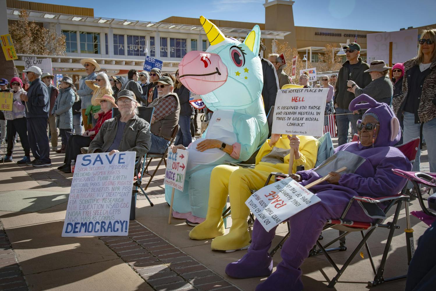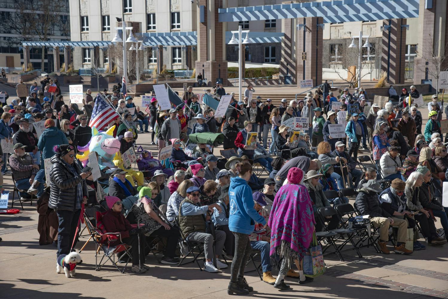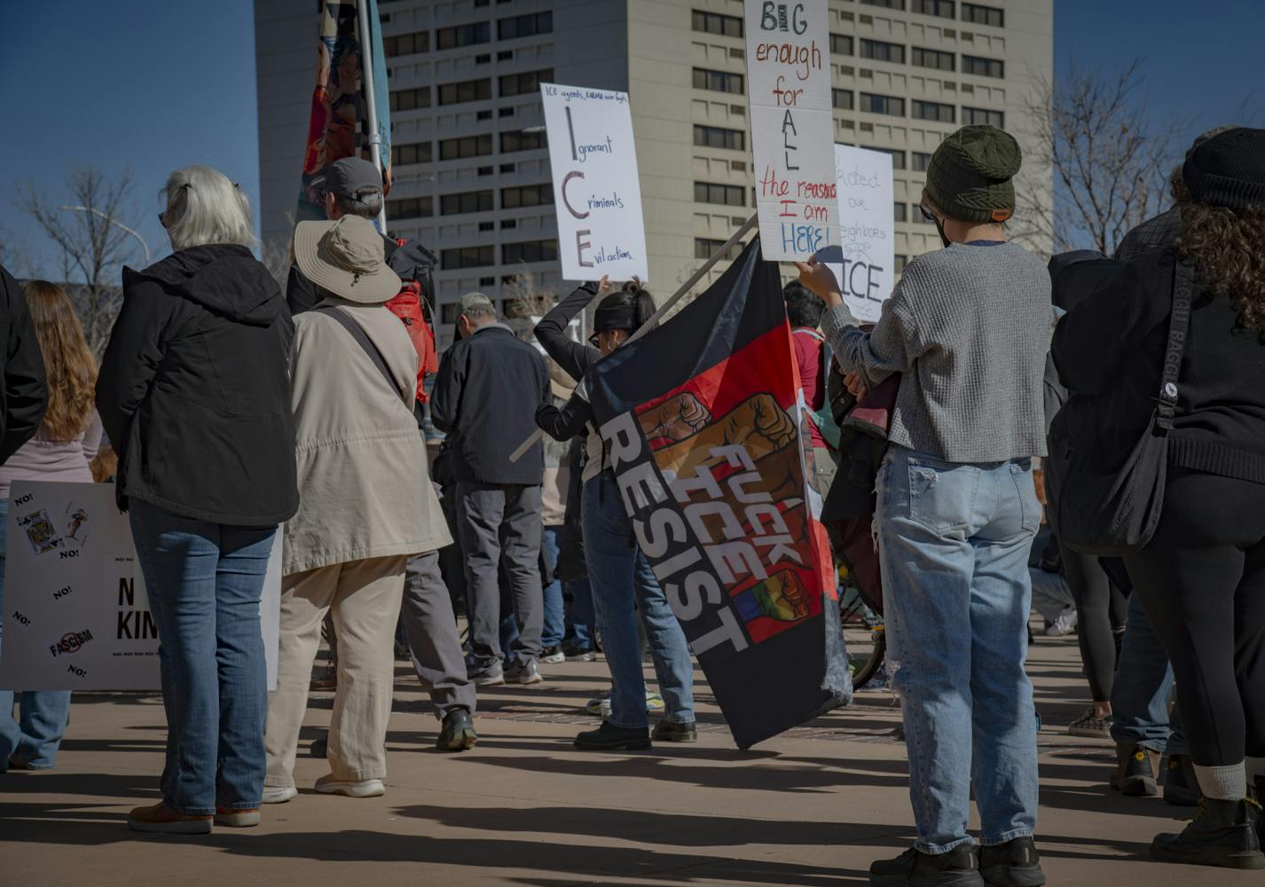 Hundreds gathered at Civic Plaza on Sunday, Jan. 18 to express their disapproval of President Donald Trump’s administration, including Immigration and Customs Enforcement detentions, the fatal shooting of Renee Nicole Good by an ICE agent in Minneapolis, Minnesota and Trump’s “fascism,” according to the event flyer.