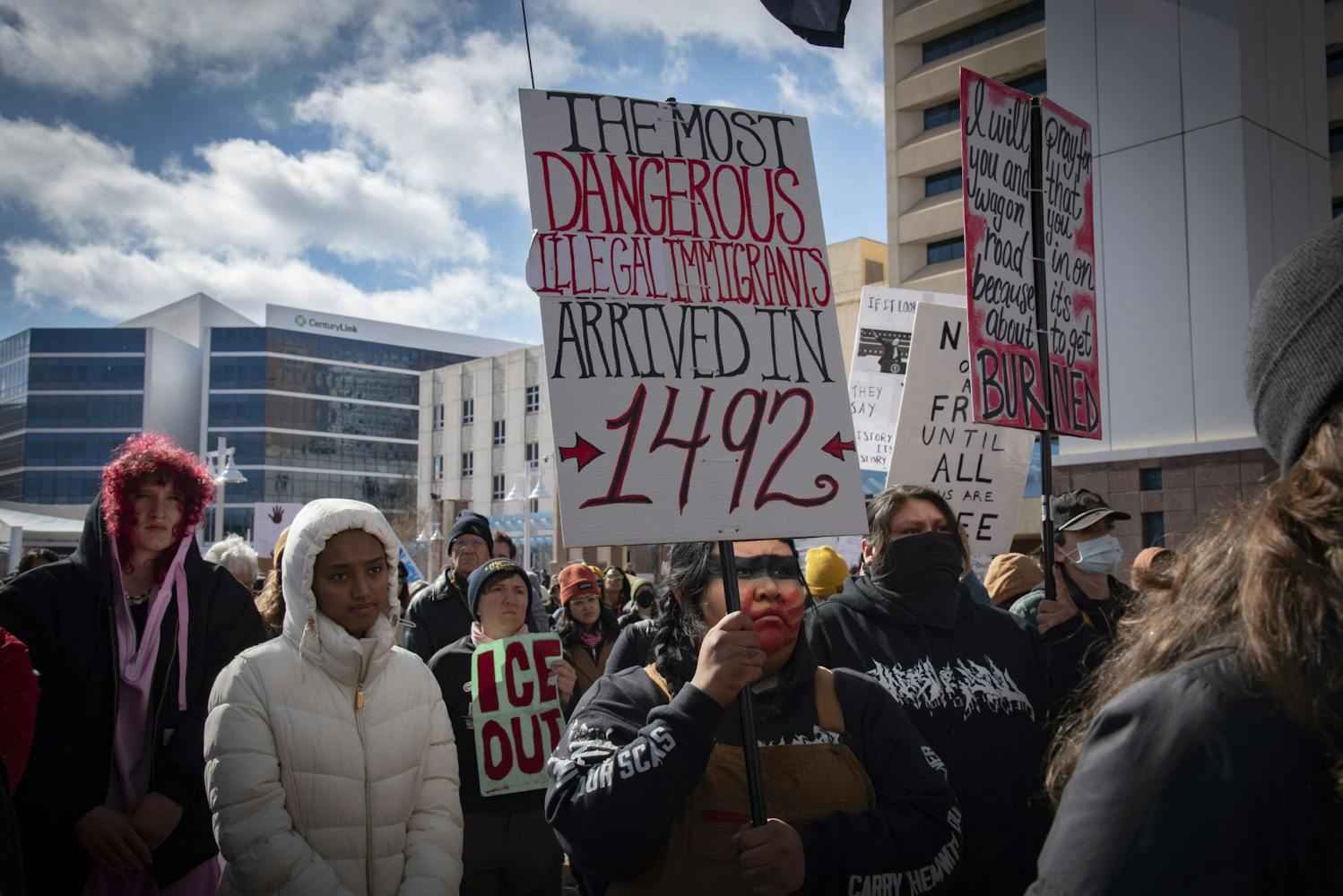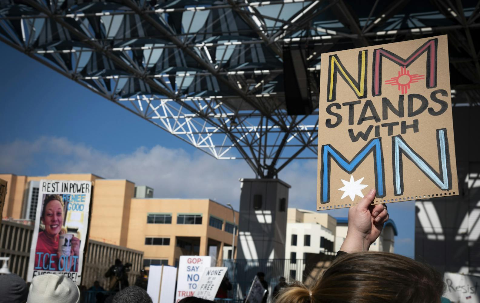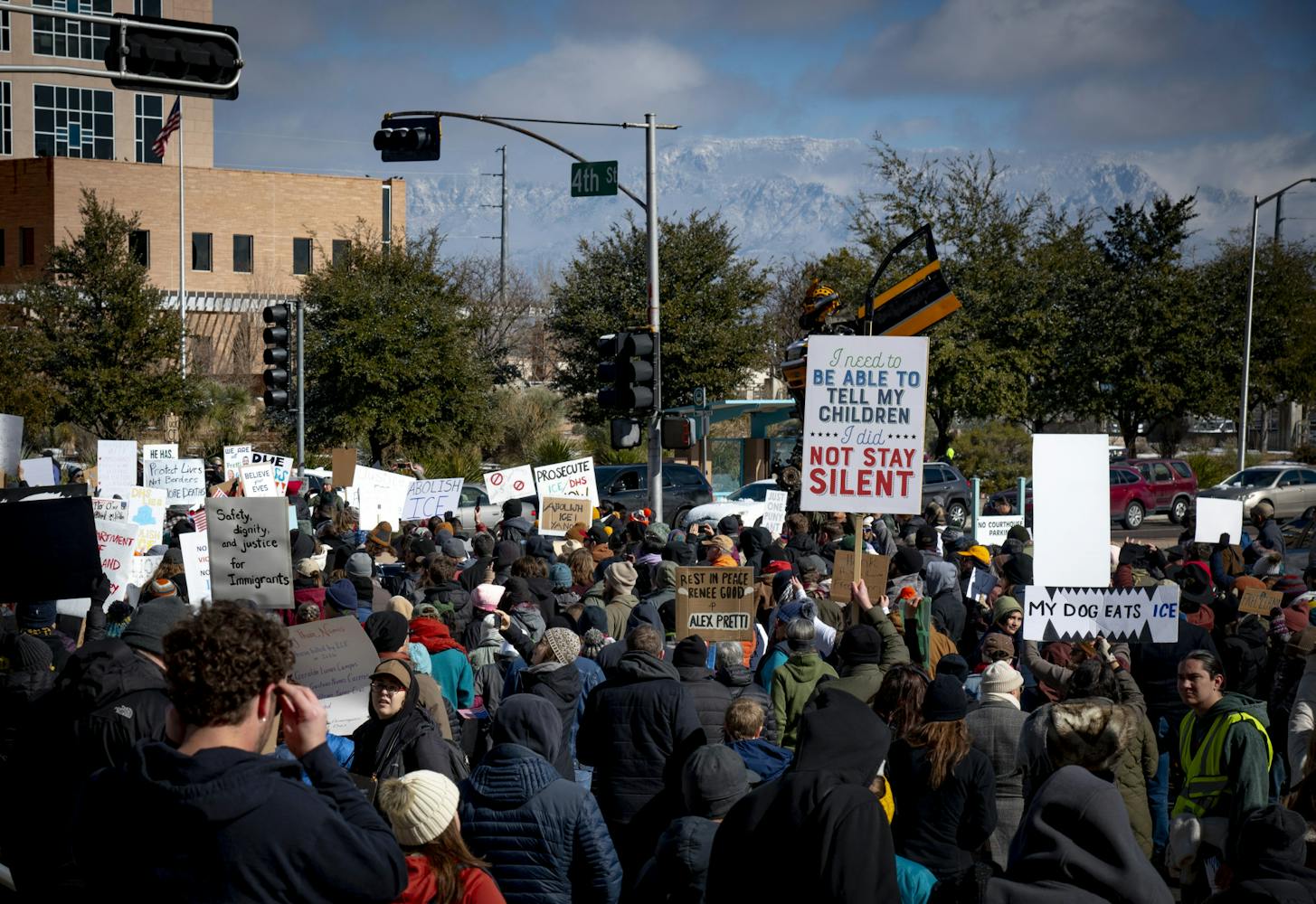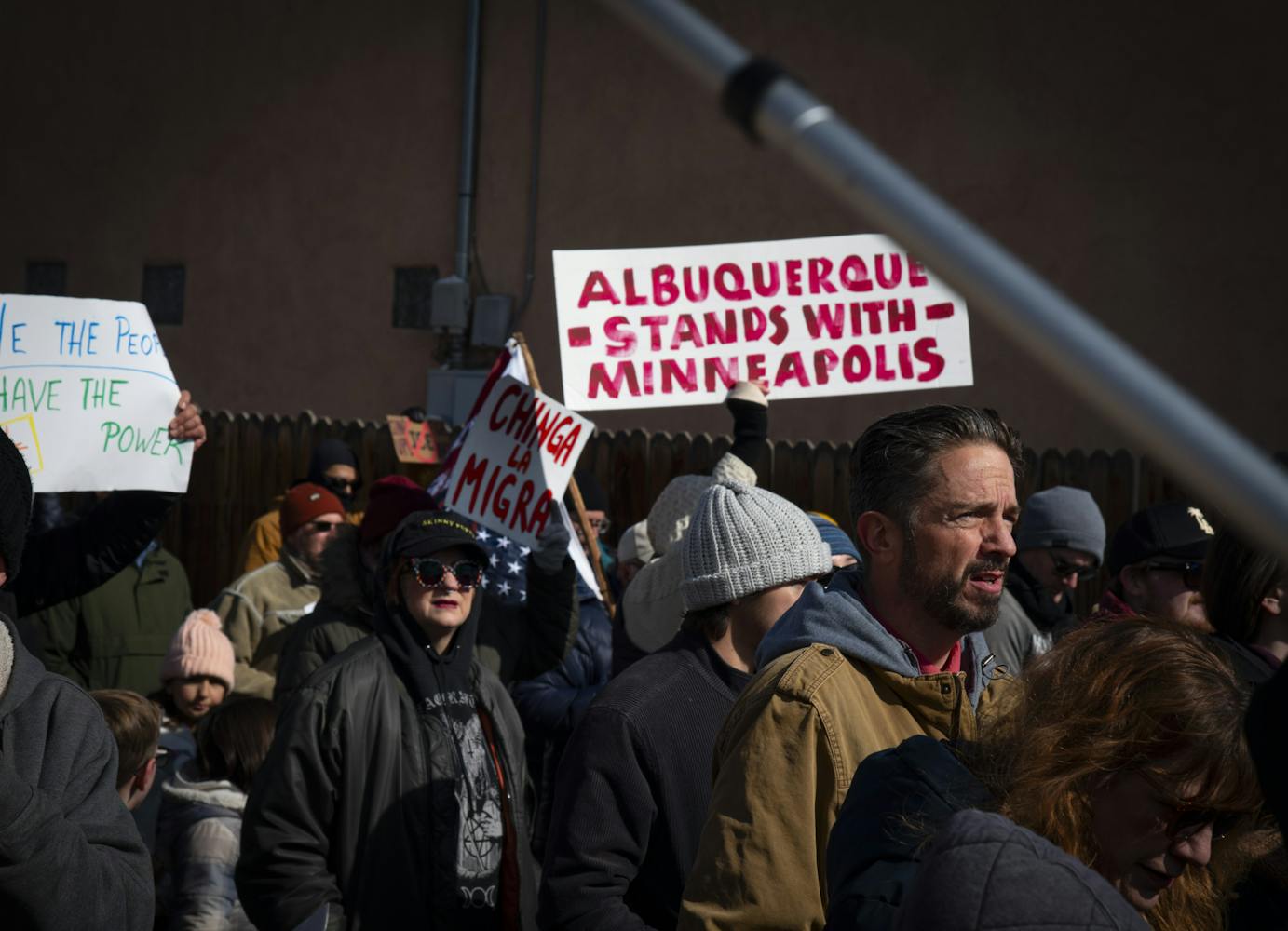 Over a thousand protesters demonstrated in Albuquerque on Sunday, Jan. 25, marching from the Bernalillo Metropolitan Courthouse to Civic Plaza to demand the removal of Immigrations and Customs Enforcement agents from communities around the country and expressing solidarity with Minneapolis, Minnesota, after 37-year-old Alex Pretti was fatally shot by ICE agents the day before.