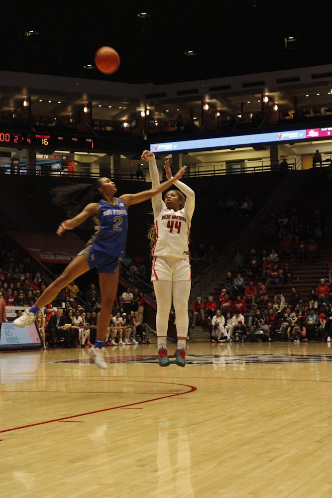 On Saturday, Feb. 21, the University of New Mexico Women’s basketball team, led by guards Destinee Hooks and Nayli Padilla, beat down the Air Force Academy Falcons, winning 73-53.
