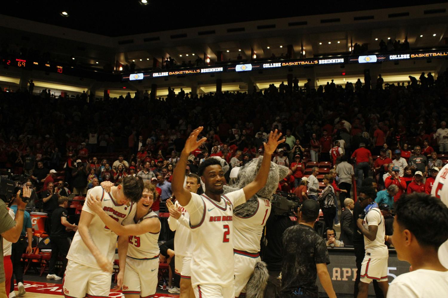 UNM looked rejuvenated coming out of halftime, taking control of the game with physicality, building a 15 point lead — courtesy of a 17-4 run with less than 8 minutes to go — and scoring 22 free throws compared to Saint Joseph’s 8. UNM also had 40 points in the paint to the Hawks’ 32.