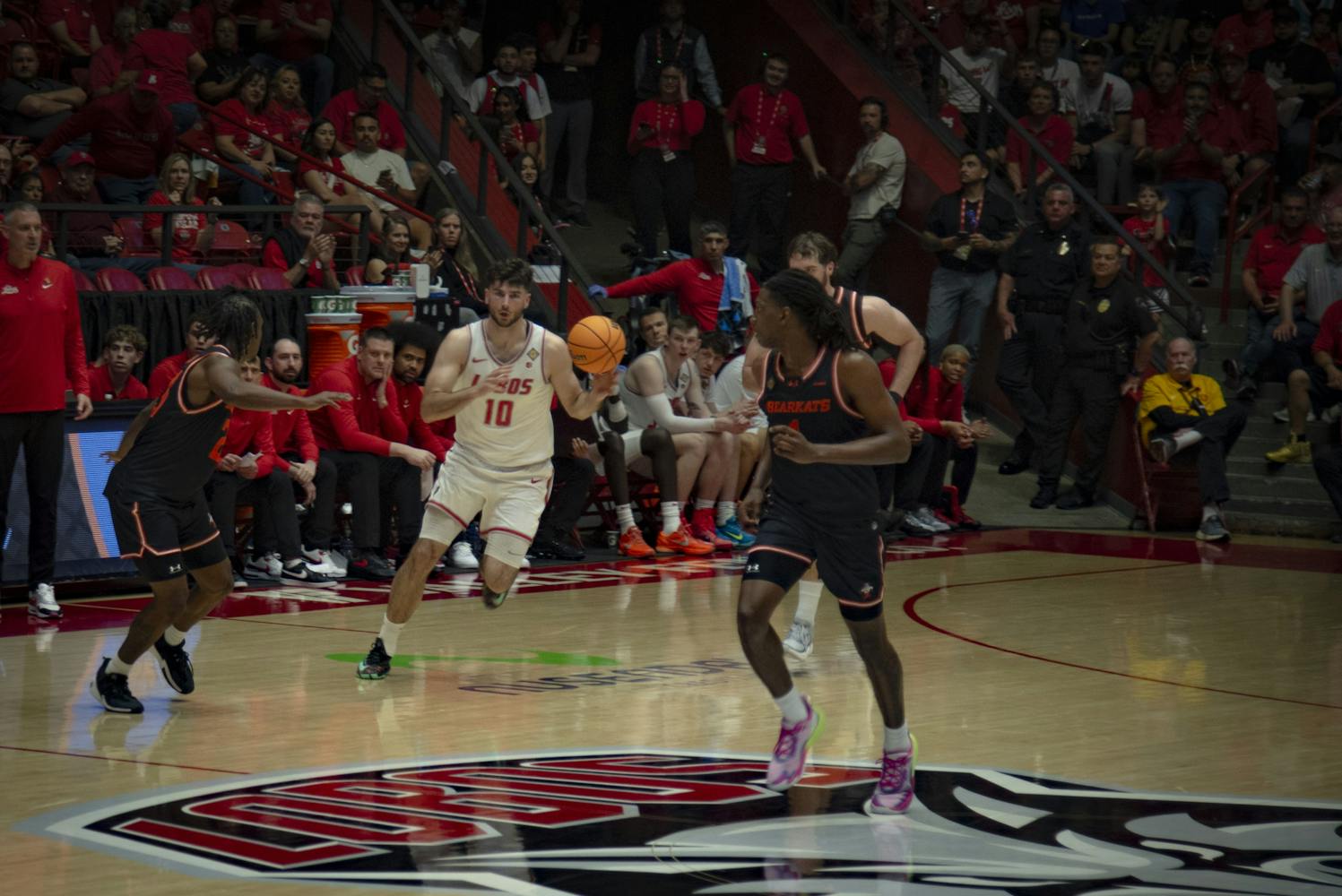 The Lobos maintained their dominance in the second half, starting out on a 13-6 run, creating a 19 point lead. The team would lead by as many as 32 points in the second half, following a pair of 3-pointers from forward Antonio Chol.