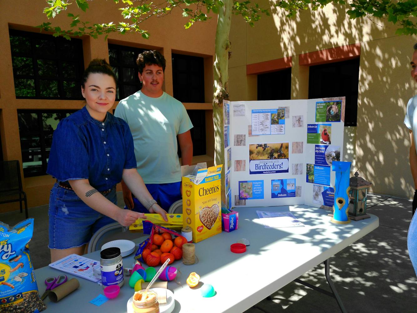 One table featured research on how to minimize food waste, and another one displayed their own research on how social media promotes fast fashion consumption, which eventually ends up in the landfills. The table demonstrated a way to recycle clothes by turning them into tote bags.