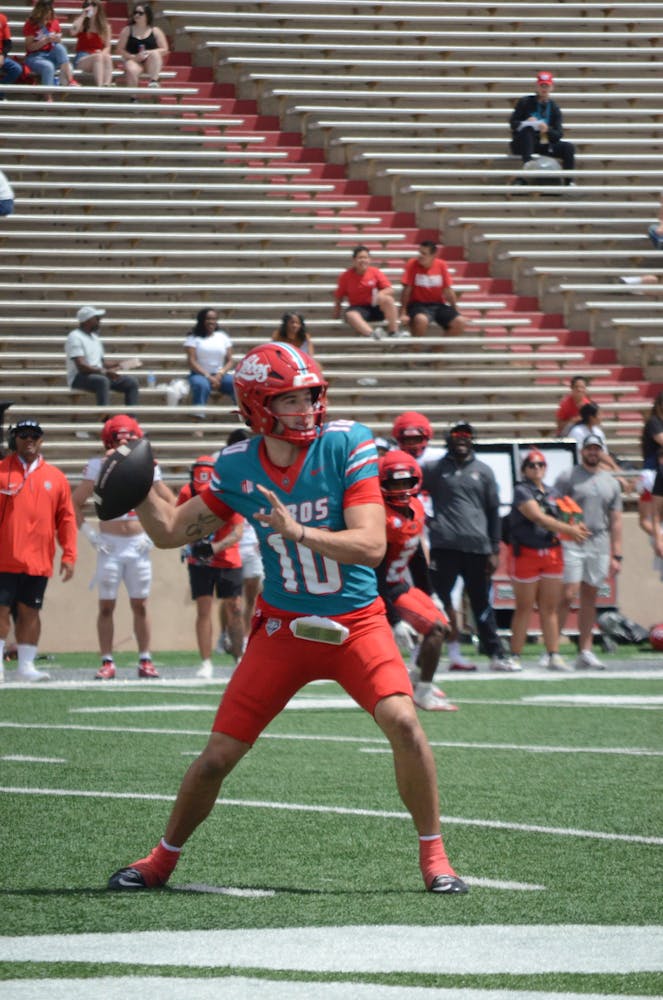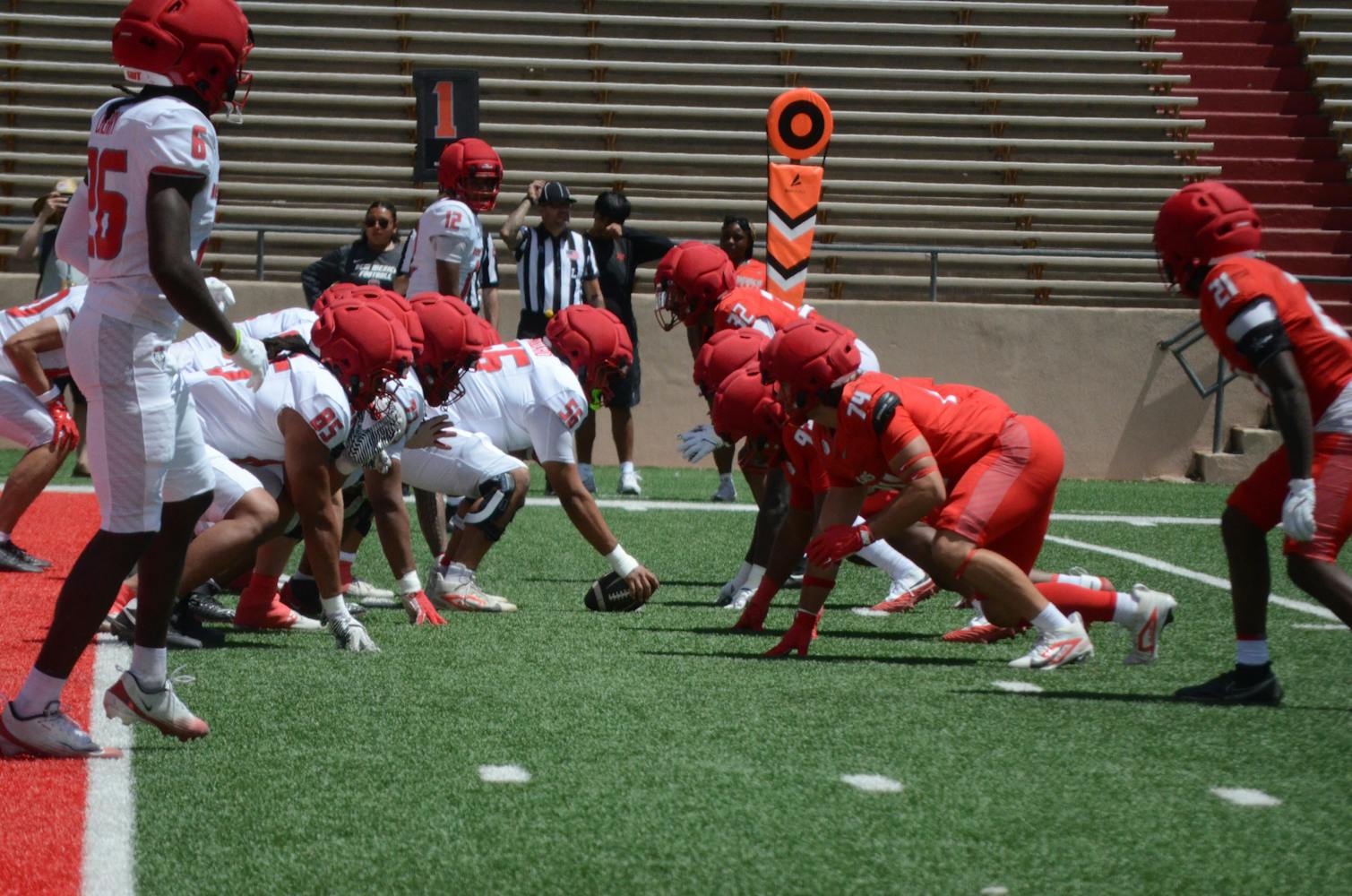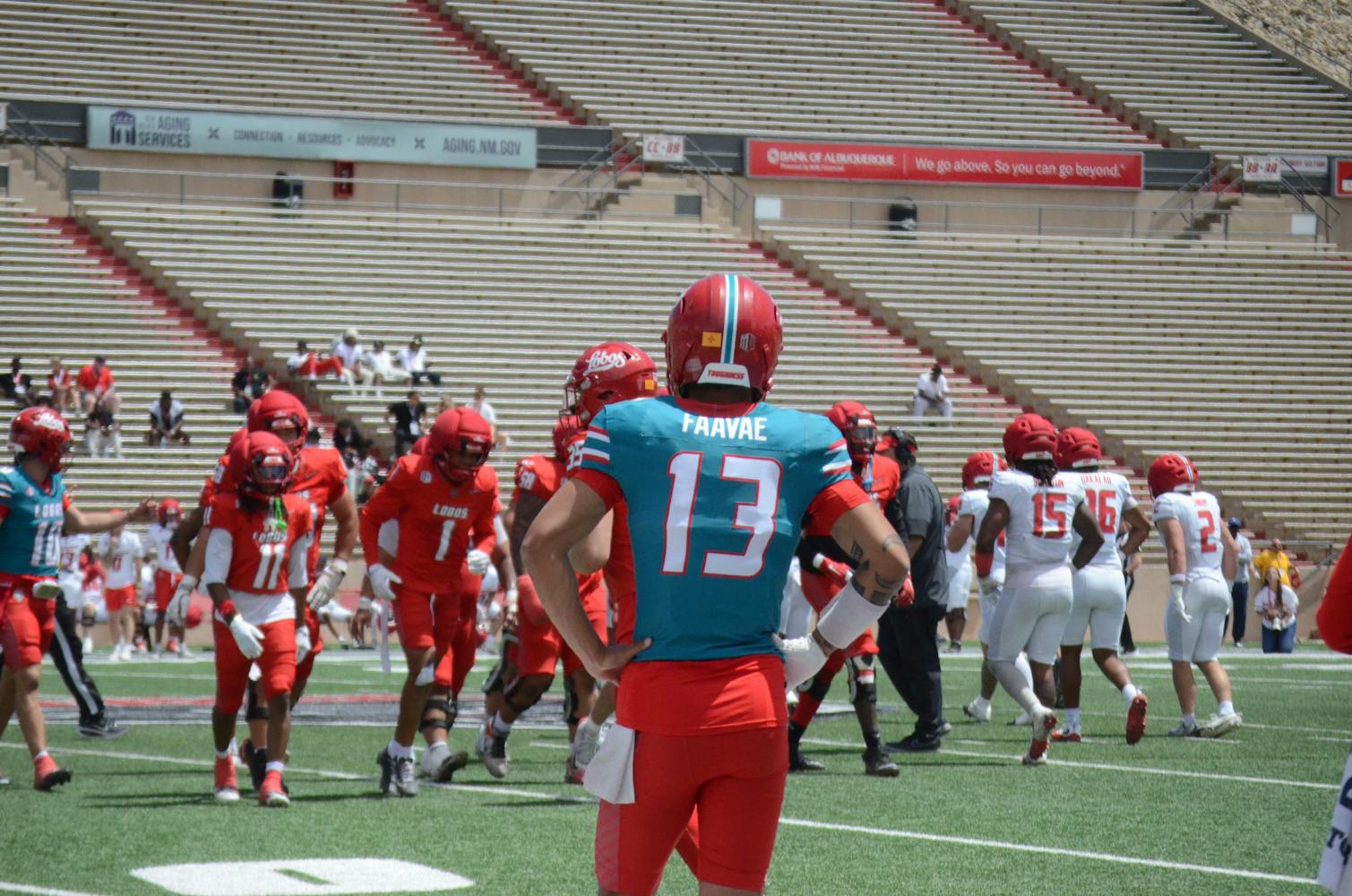 The Lobos had an intrasquad style of scrimmage for their spring game. Team Cherry comprised of the first team offense and defensive reserves versus team Silver, comprised of first team defense and offensive reserves.