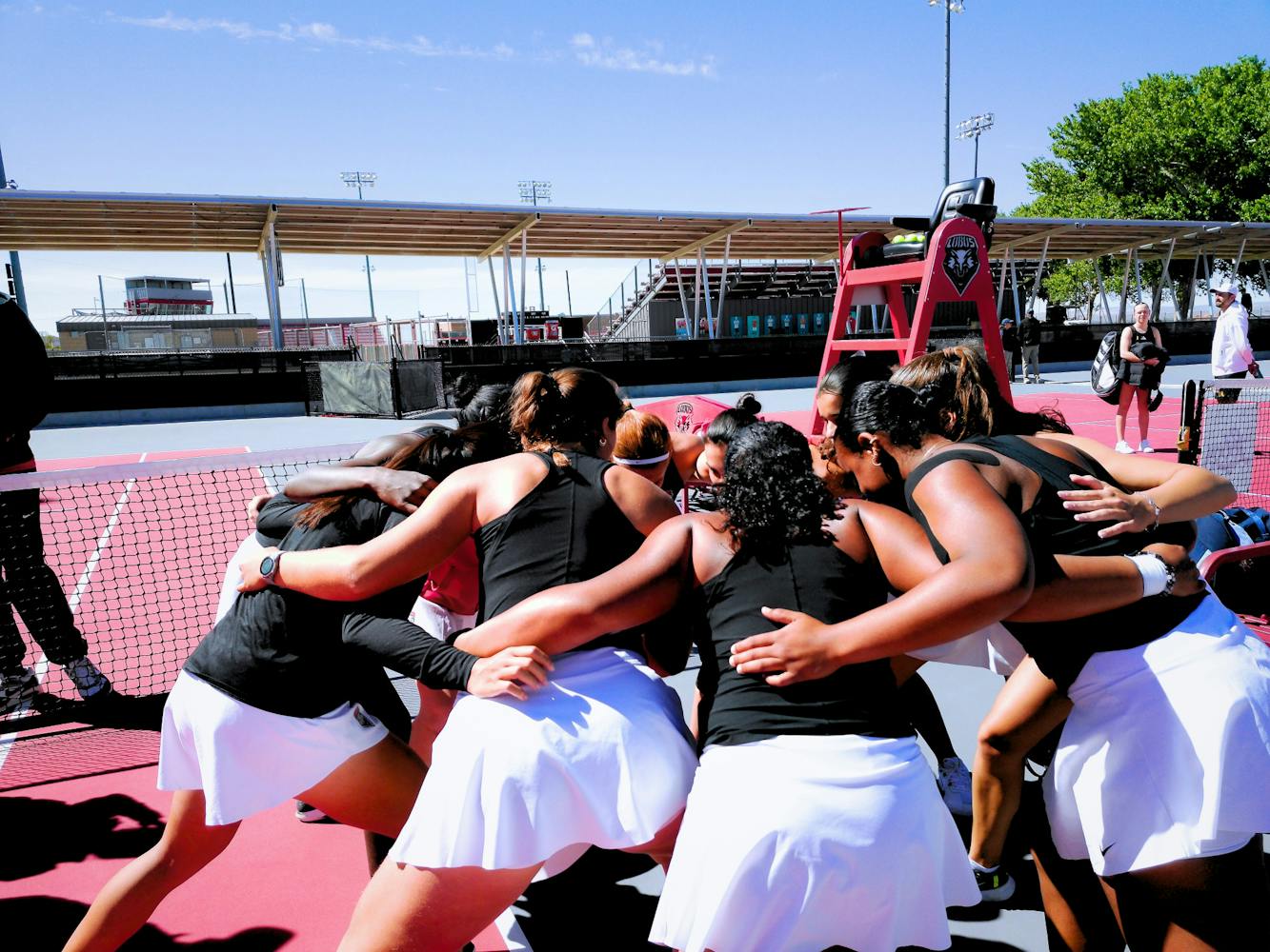 Lobos took over the doubles with court one played by twin duo Vianca Corley and Vivica Corley, defeating the Cowgirls 6-1, and court two played by Yu Yun “Kathy” Tsai and Bente Vandeputte, winning 6-4.