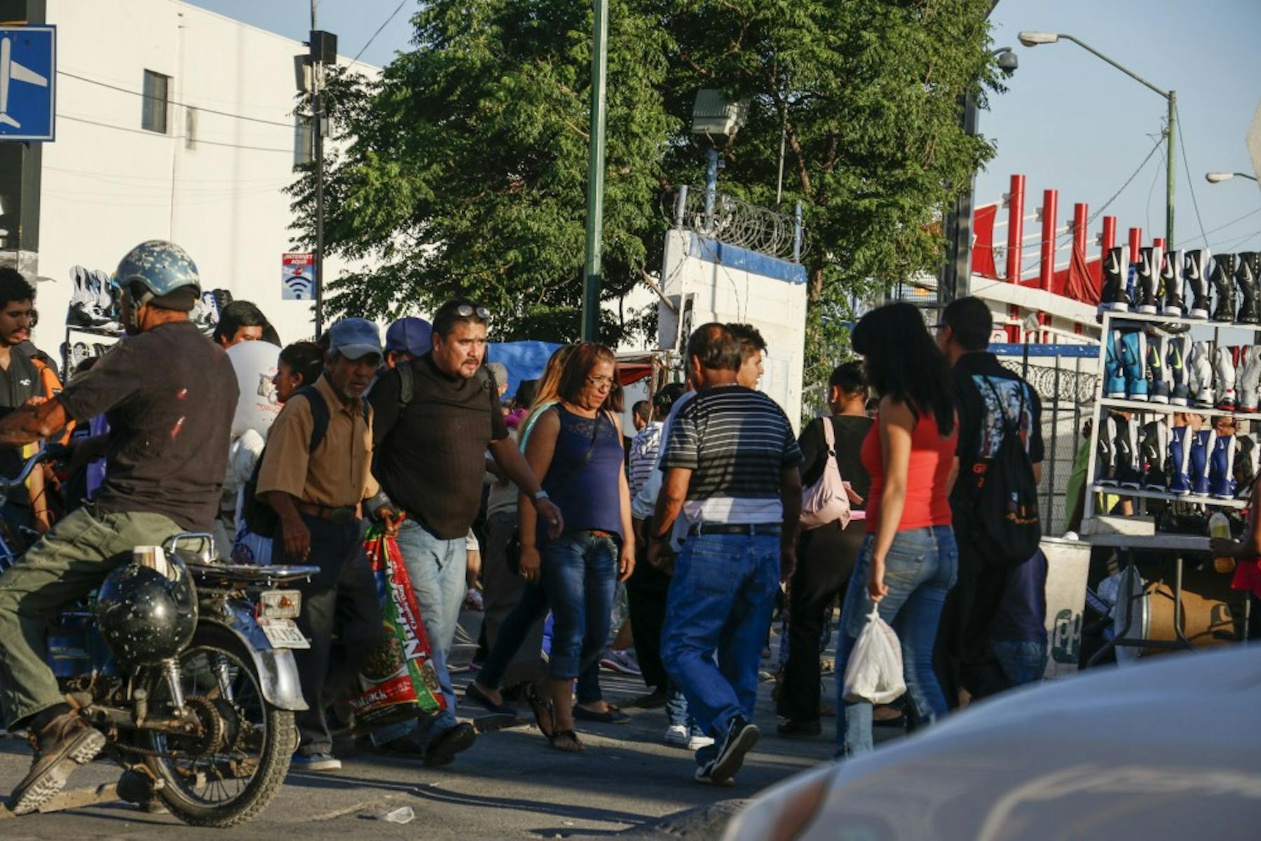 A traffic jam in Juarez, Mexico caused a 30 minute delay for those that got stuck before the train passed. As soon as they heard the train, people rushed across to pass the one-way street, La Ferrocarril, that the train intersects. In February 2015, 20 people died in a collision in Northern Mexico, according to the Chicago Tribune. Sometimes cars are still passing when the train is only a few feet away. A security guard tries to control the scene. Some people in the streets find it a good time to perform in front of the stalled cars to earn some spare change. Some people try crossing to the other side while the train is moving. In this picture, the train is stopped and people start crossing to the other side without knowing when the train will start running again.