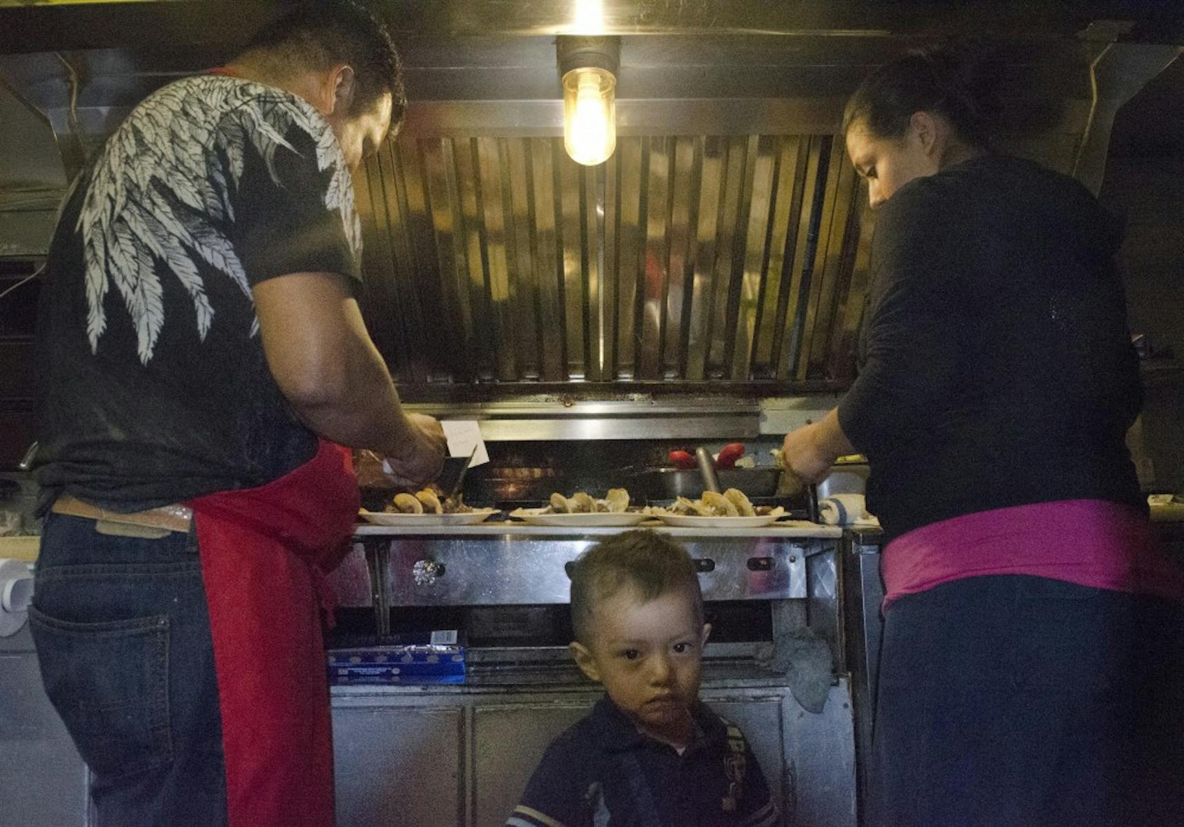 The Mancillas came to the United States 14 years ago from Mexico. Alberto Mancilla, 34, and his wife Irene Mancilla, 29, own the El Taco Loco Mexican food truck parked at San Pedro Drive and Central Avenue. They’ve operated their food truck in Albuquerque for the past five years. Their business is popular around the International District for its carne al pastor. This Central Mexico dish is meat marinated in a guajillo chile sauce and roasted on a spit called a trompo. Carne al pastor is distinct for being served with pineapple pieces in tacos, tortas or burritos. At El Taco Loco, customers don’t pay until they’re finished eating.