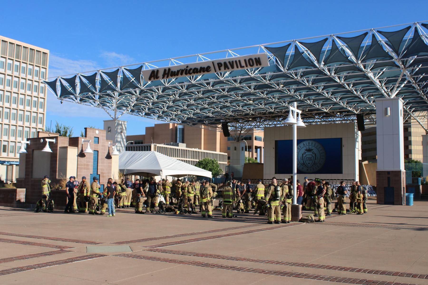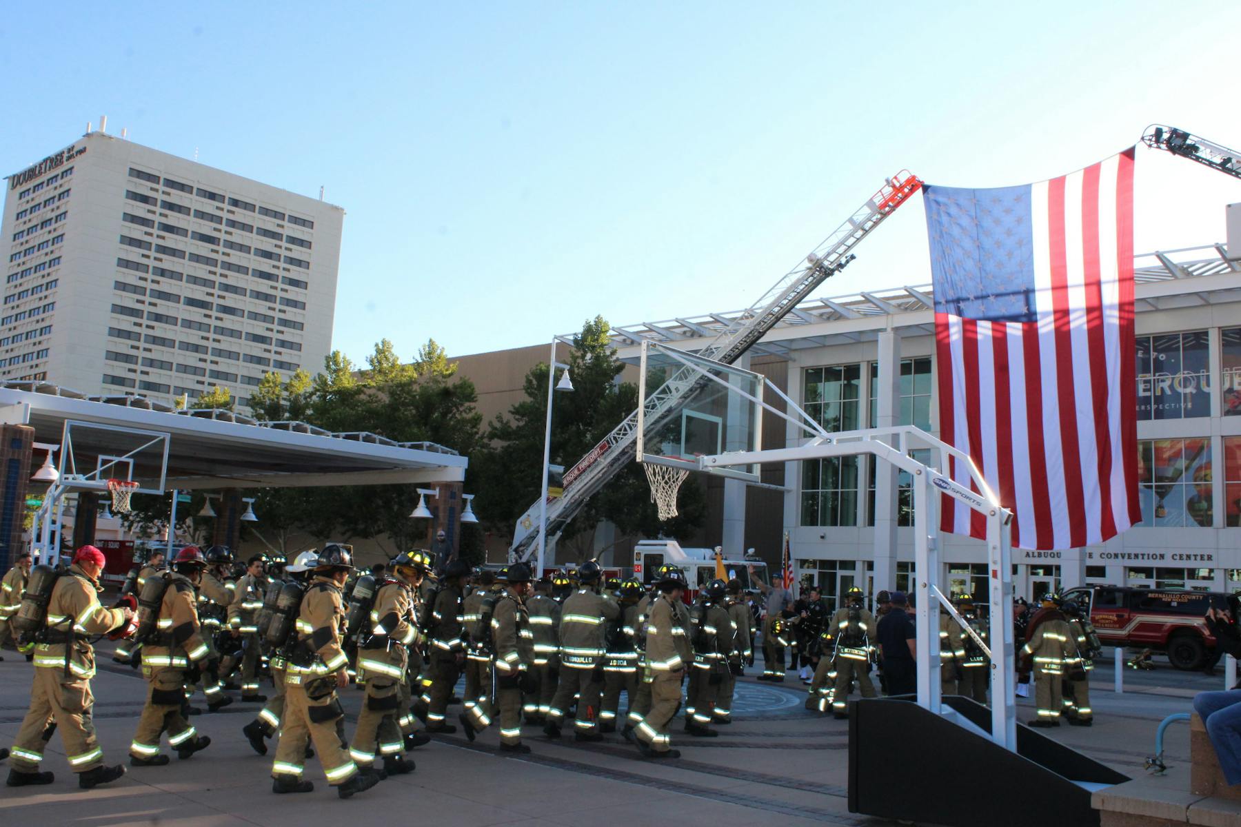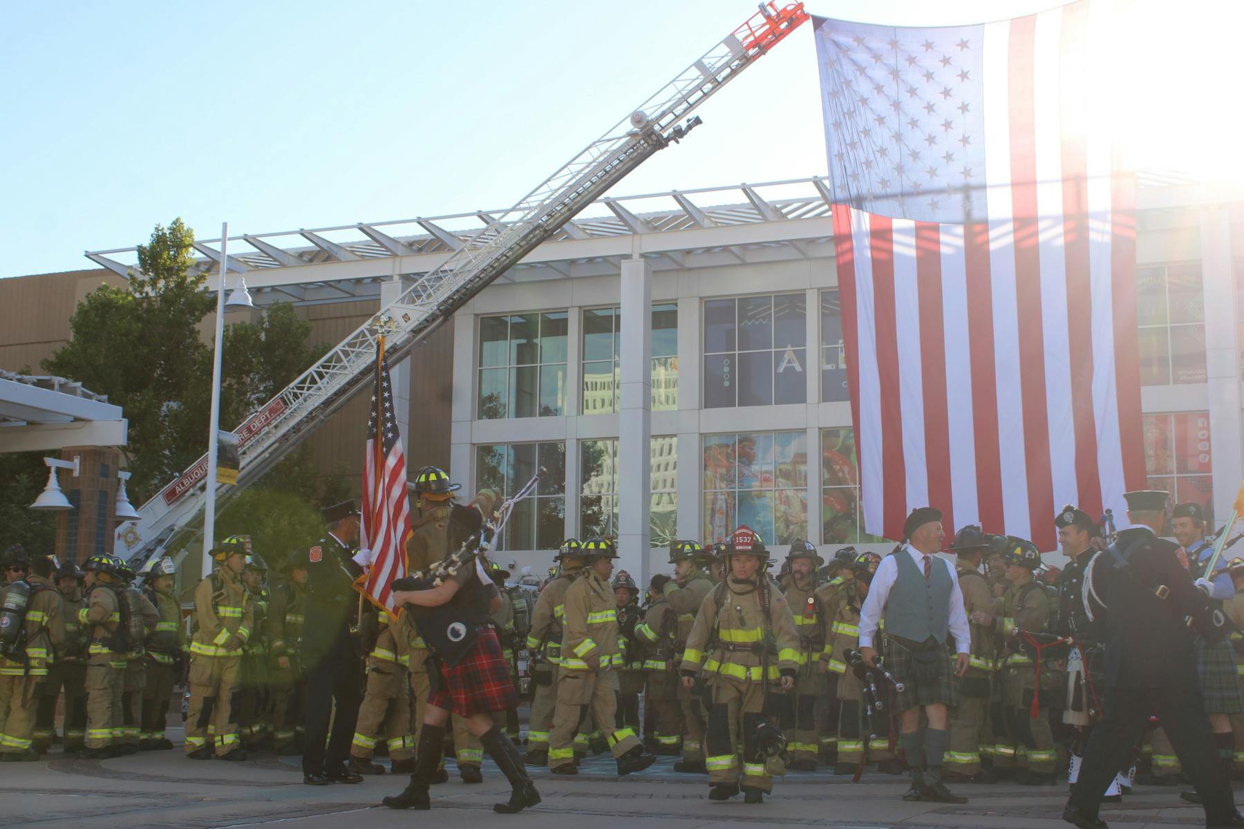 On Sept. 11, firefighters from across the metro area gathered in Civic Plaza for an annual memorial climb to honor the victims of the Sept. 11 attacks in New York City. The firefighters climbed 110 flights of the Washington Federal building downtown in full gear as a testament to the first responders who helped during the attacks, climbing flights of stairs in the World Trade Center to save people trying to escape.The event began with the playing of bagpipes as an American flag waved between two fire trucks, before the firefighters began their climb at 8:46 a.m., the time when the first plane hit the North Tower of the World Trade Center.