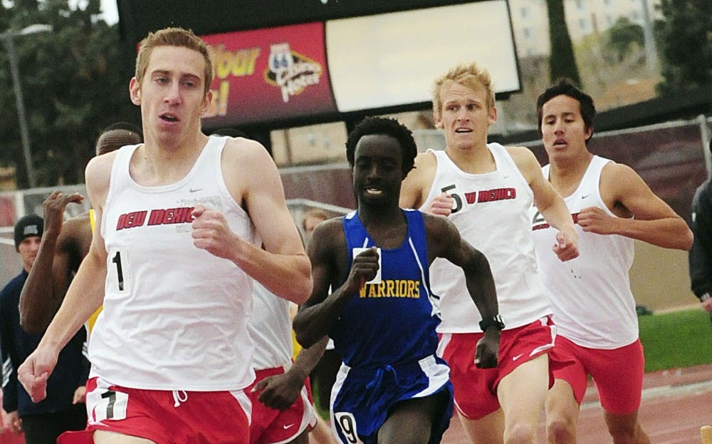 Lee Emanuel takes the lead over a pack of competitors in this file photo. Emanuel wants to improve on his light-speed mile time in the Lobos’ Cherry and Silver Invitational on Saturday.