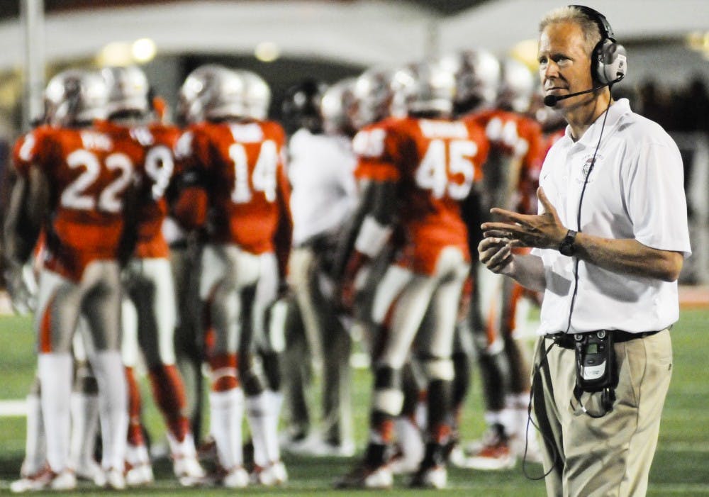 UNM football head coach Bob Davie looks out at University Stadium during the game against Arizona State on Saturday night.