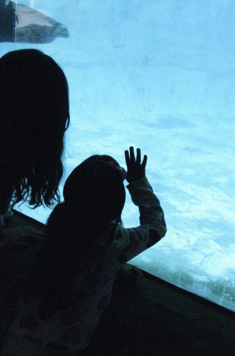 Cousins Mireya Jurado, 18, and Julissa Jurado, 4, watch for sea lions to swim by at the ABQ BioPark Zoo on March 7.